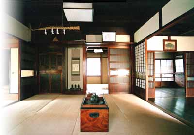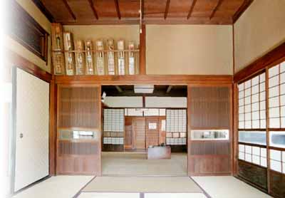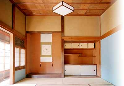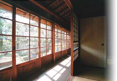 数奇屋風のつくりの奥座敷。 かみてに平書院・入側縁がある。 現在は茶道等の活動に用いられる。 |